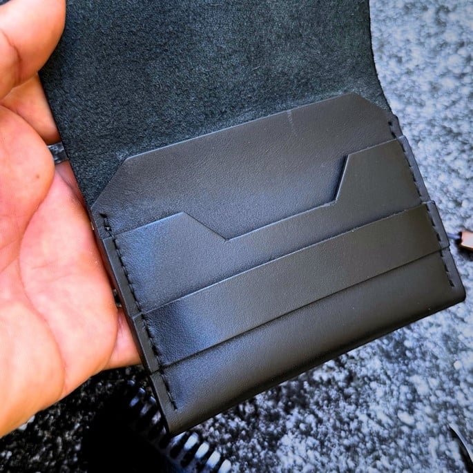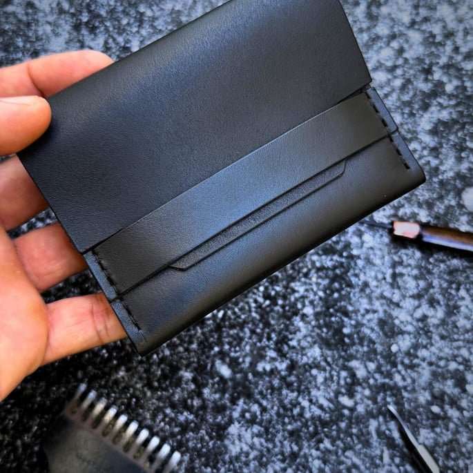 Carteira de design minimalista em couro legítimo, pensada para quem busca funcionalidade com baixo volume. Produzida artesanalmente com costura manual reforçada, oferece durabilidade elevada e estética sóbria. Uma peça essencial para organizar cartões e notas de forma prática e segura no dia a dia.